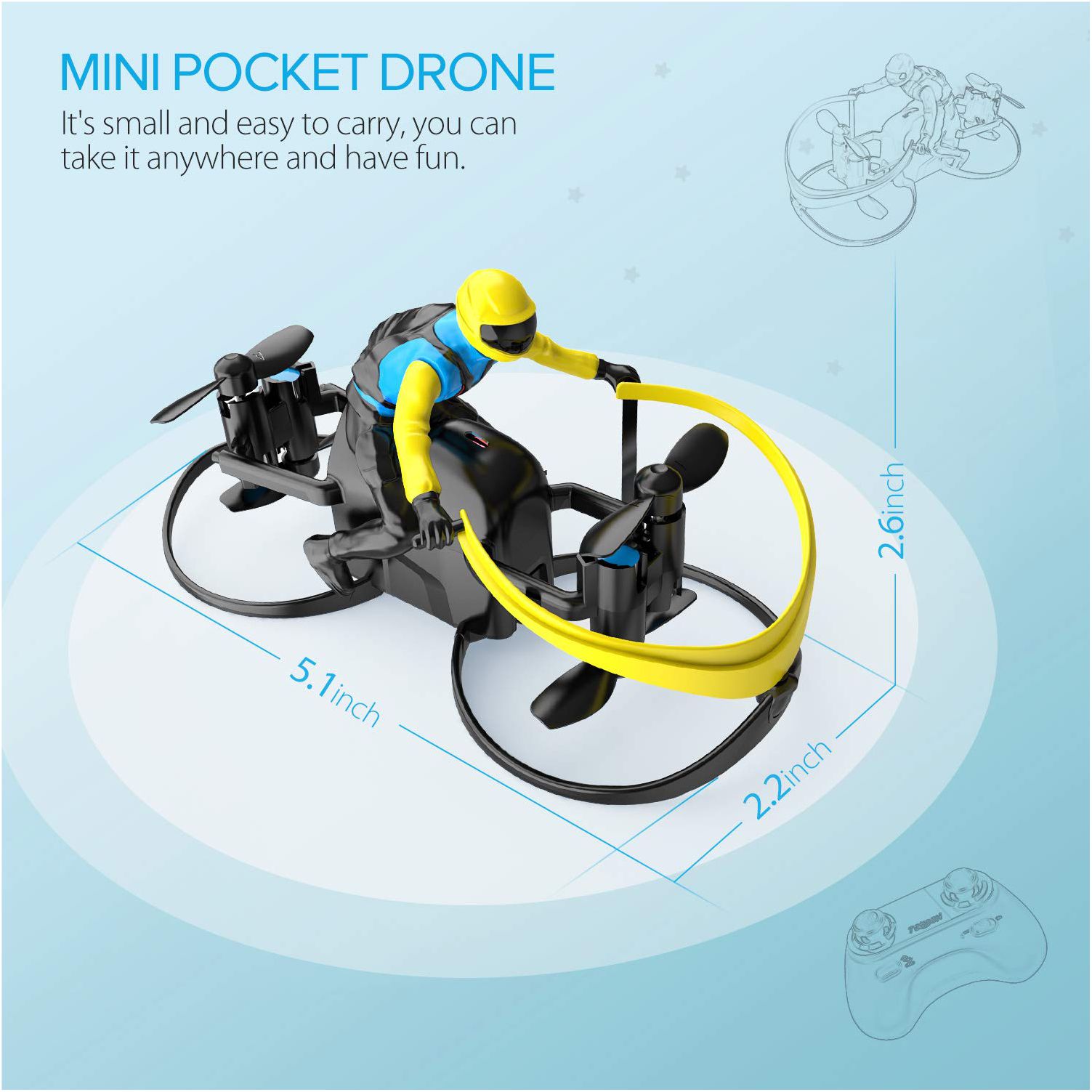 Full Functions : Our mini drone has many functions, such as one key to take off / land, turn left / right, fly forward / backward, leftward / rightward, circle / demo flying and so on.