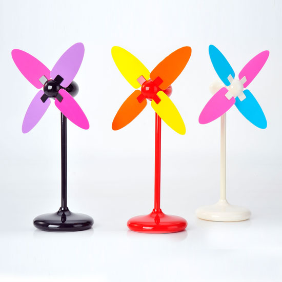 The pictured mini fan boasts a single pedestal design with dual-toned blades. The high-quality mini fans deliver a cool breeze during the hottest summer days. The B/O mini fan can operate continuously for 1 hour.
