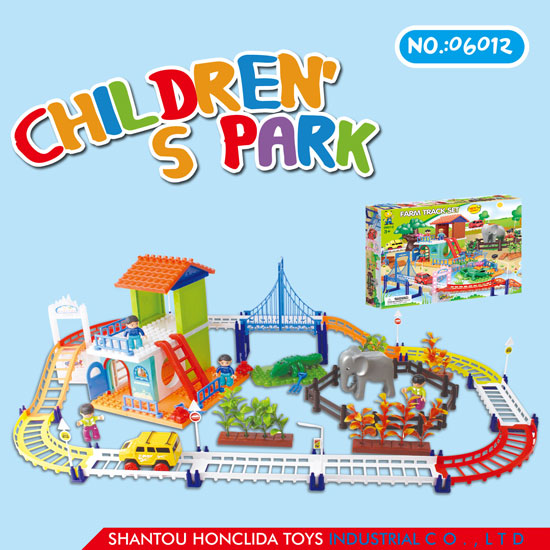 This colorful kids' playset features a mini farm surrounded by a circular track system. The mini farm playset offers your kids with various role-play game possibilities. The playset can be easily assembled and disassembled.