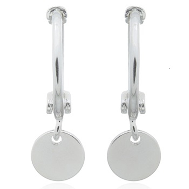 Mini Hoop Hanging Disc Silver 925 Huggie Earrings