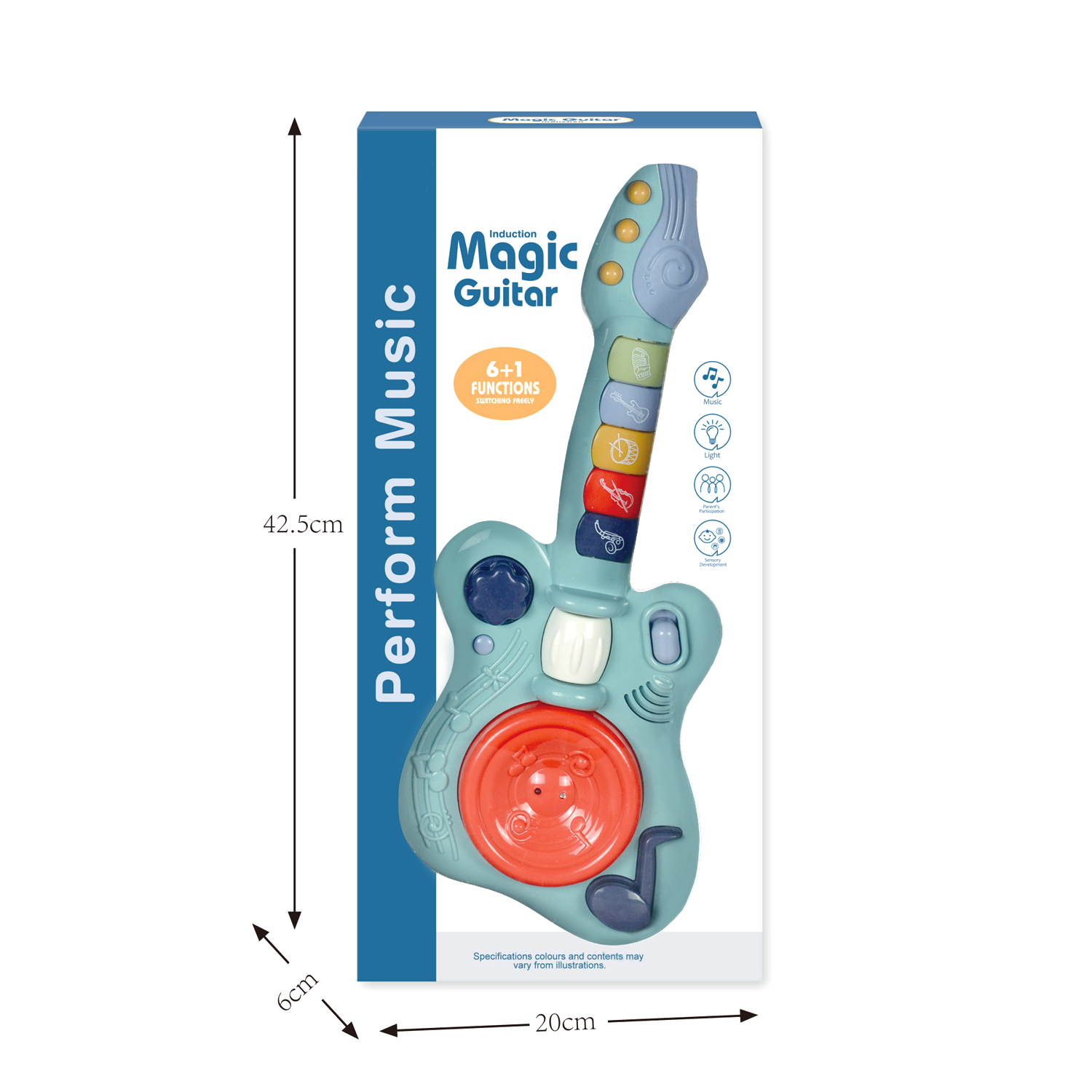 Move your hand like strumming a guitar over the motion activated section and the guitar makes different musical sounds