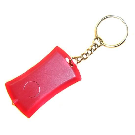 This is a metal key chain with LED light. The key chain is small and light, making it easy to carry them around. The flashlight is operated by button cells.
