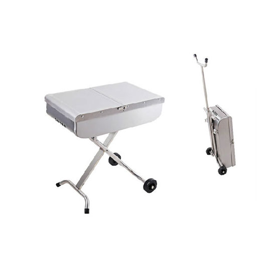 This is a full grill set that comes with 2 cooking meshes, 1 charcoal mesh and 1 mesh handle. You can use it to make mouth-watering smoked and grilled meat with great ease. You can also transform the unused grill into a small cart for easy storage.