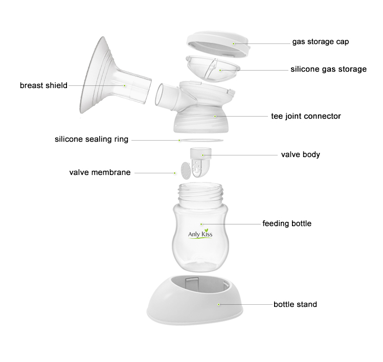 The breast pump is made with high quality silicone. It would be more comfortable than PP shield, and it is suitable for any size of breast, good for preventing side leakage. And we provide two breast shield(24mm & 27mm) in it.