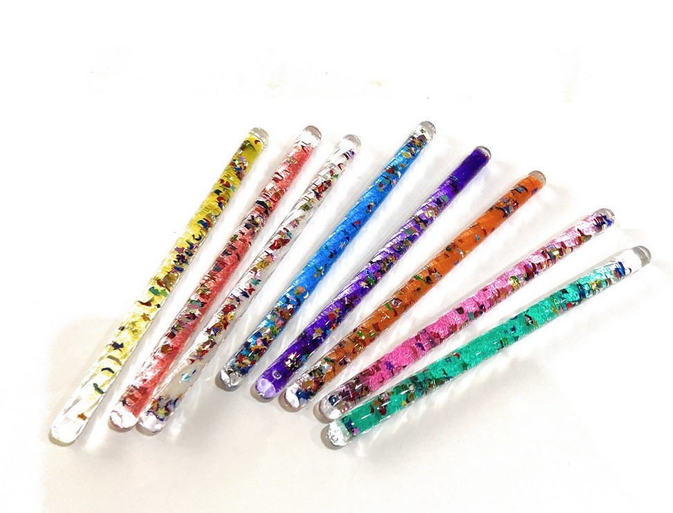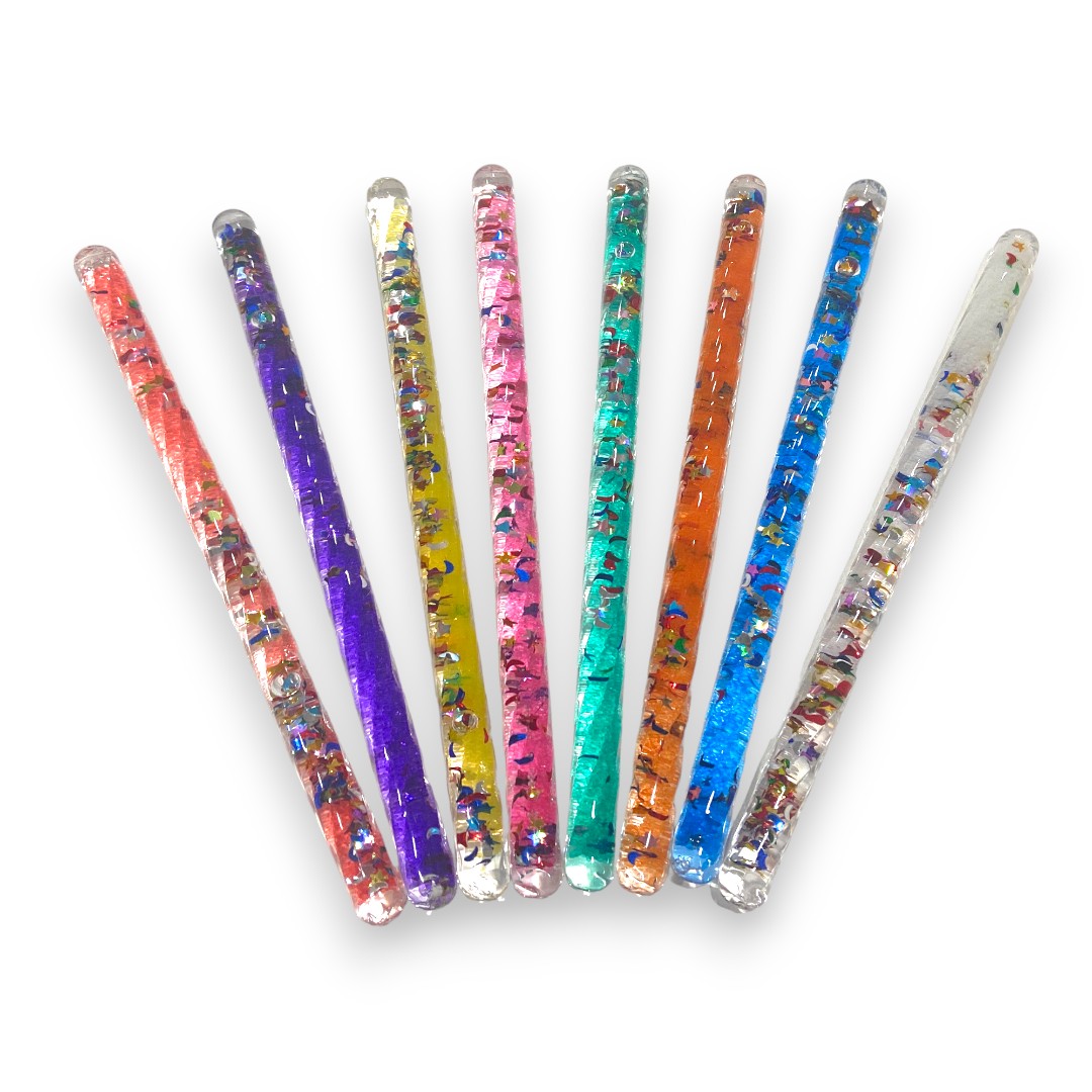 - Every wand is filled with colored sand and dazzling shaped glitter confetti—from stars to hearts and more!