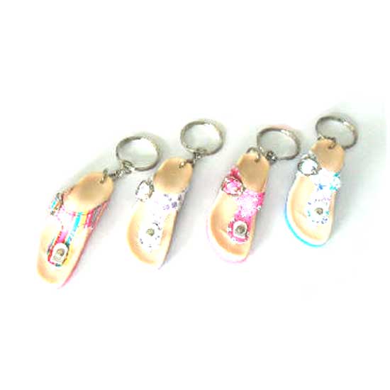 This novel keychain is attached with a realistic mini slipper with a colorful exterior. The keychain also has a large metal ring to keep your keys safe and organized. Get a good grasp of your keys with this exclusive slipper keychain.