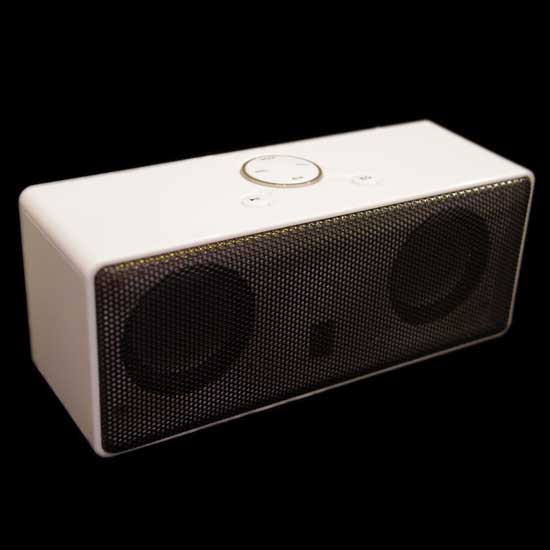 This loud speaker comes in a mini block shape for easy keeping. The bright white shell goes well with the black mesh to look stylish. This speaker can be connected to various types of players.
