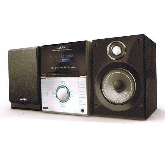 Presented is a mini speaker set that includes an amplifier and a subwoofer. The plastic construction with a backlit control panel conveys a sense of uniqueness. This versatile mini speaker set is a great option of entertainment to accessorize a living room.