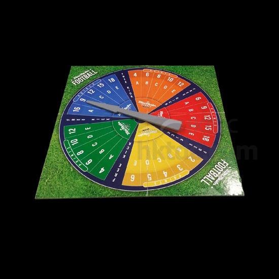 • The game is played with a "spinning dial" game board and a wand mounted, lever activated, 1:8 scale football figure featuring a fully articulated kicking leg. (Patent Pending).