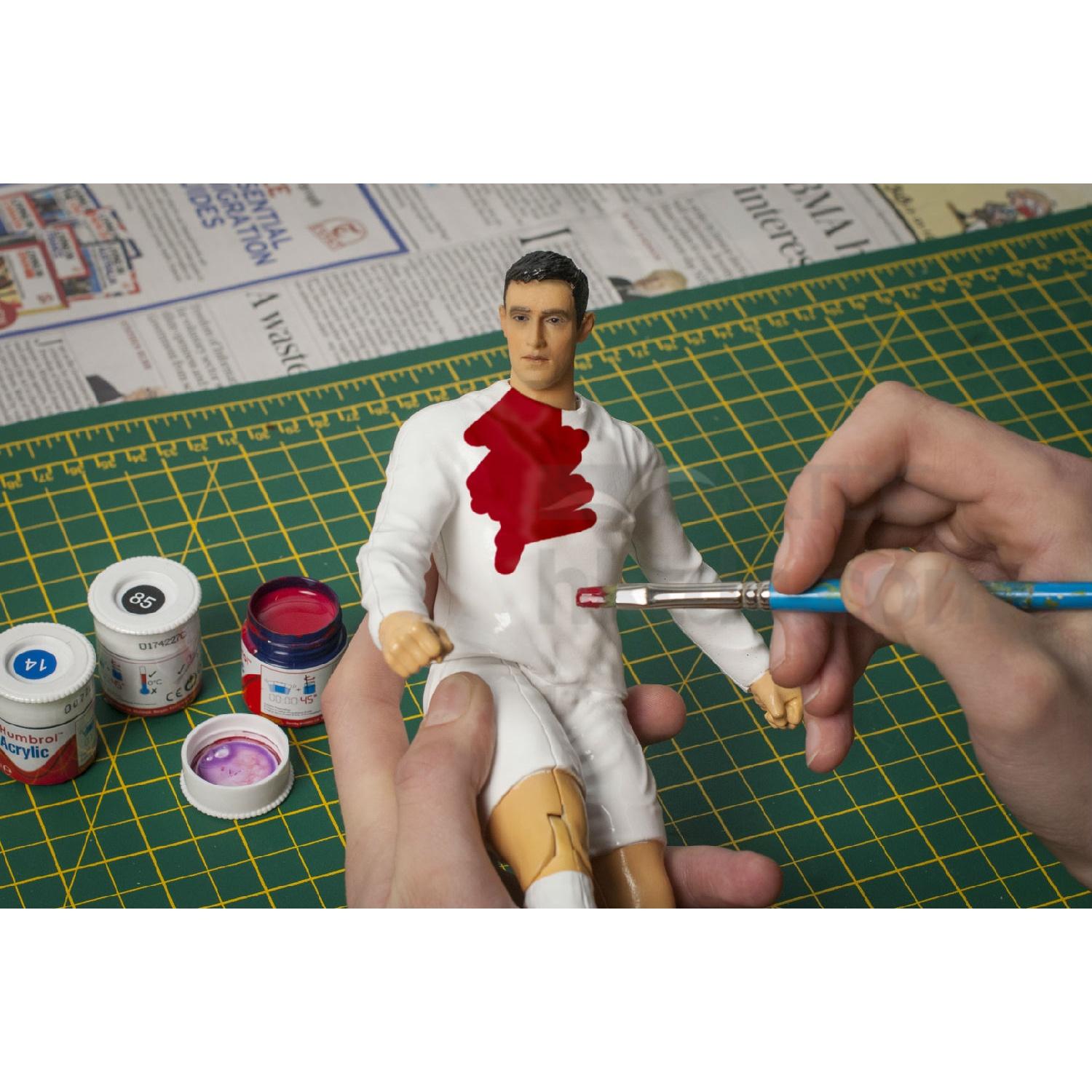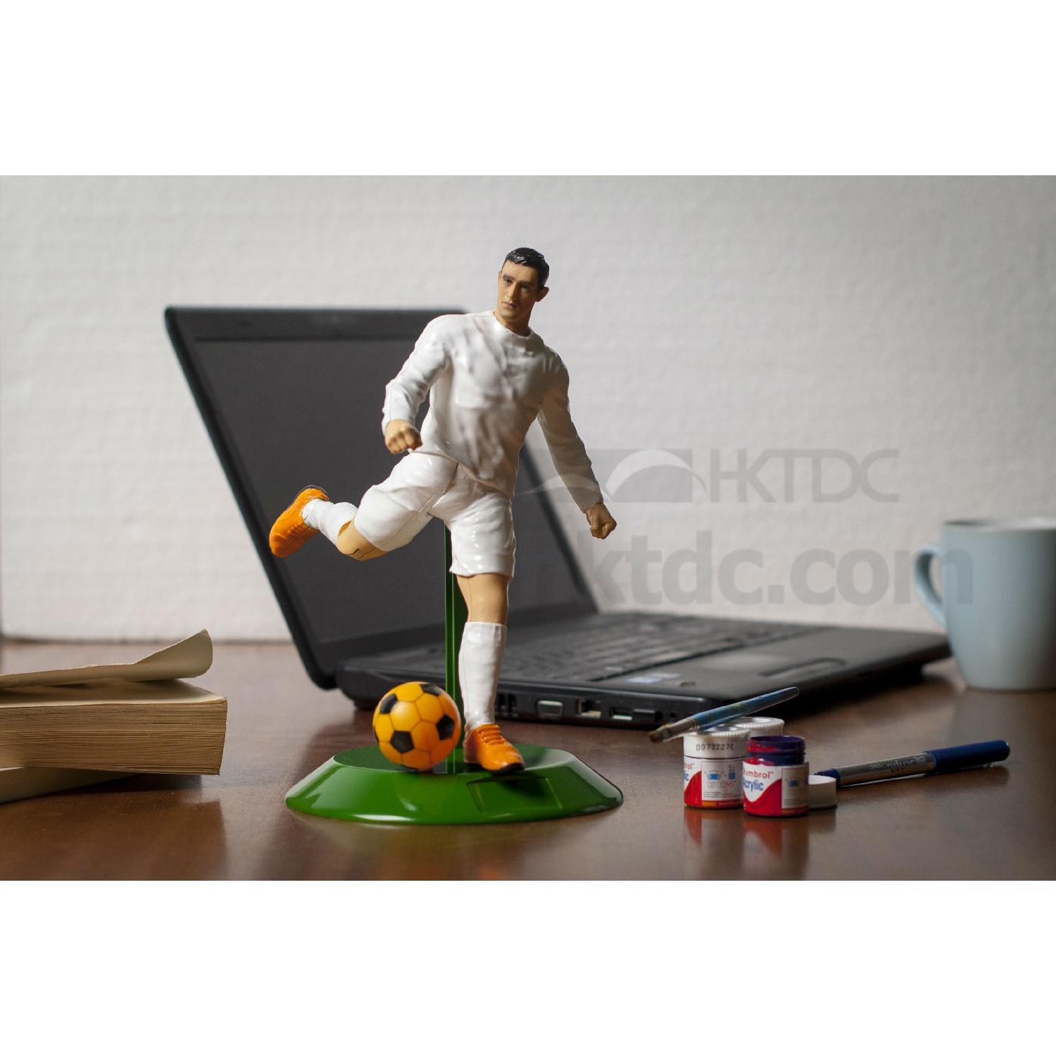 • Other unique features are that the mini footballer is fully customizable and detaches from it’s game-play operating “wand” so that it can be displayed on a custom stand between games.