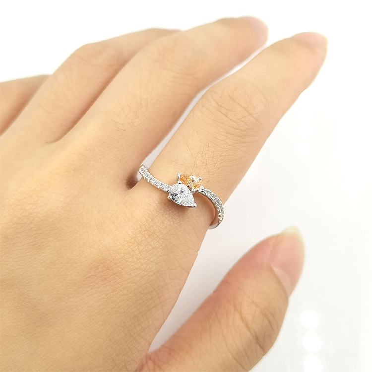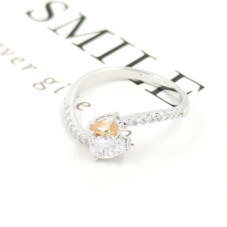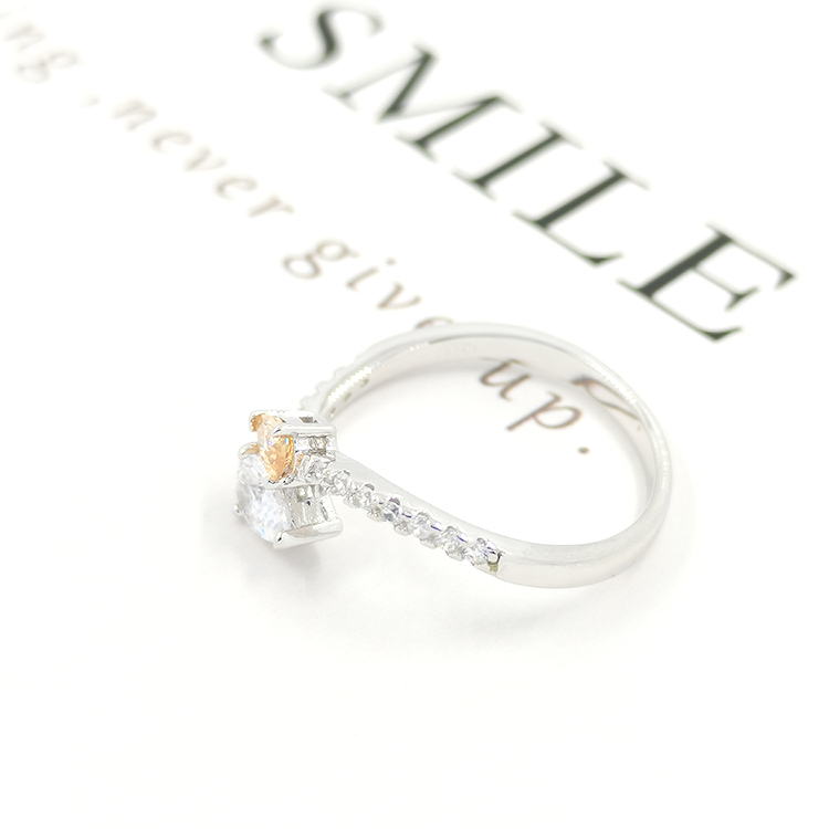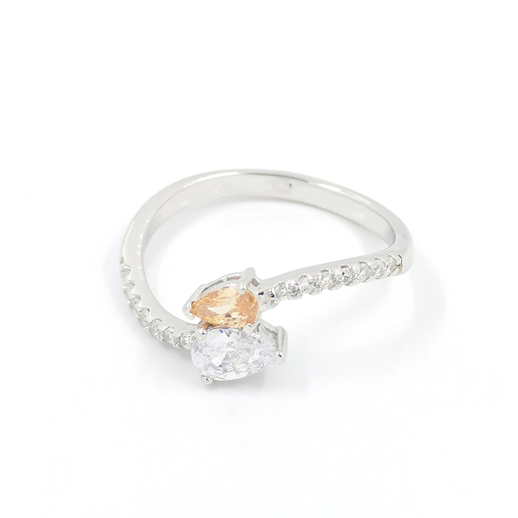 Minimalist Style Triangle Design Colorful Crystal Sterling Silver Ring