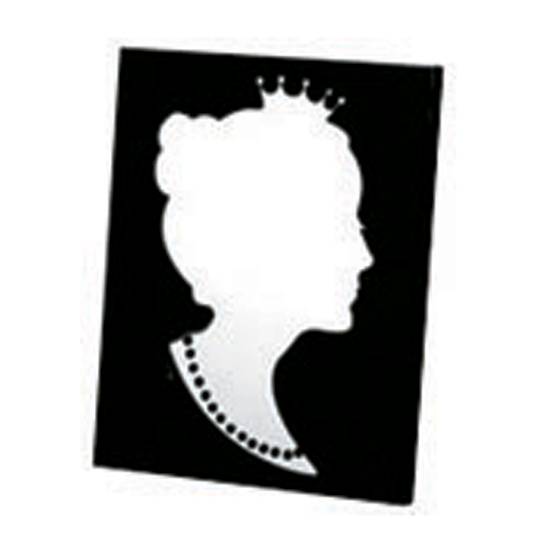 This mirror features the silhouette of a queen. The outline of the face is surrounded by felt. The queen's head and neck are designed in detail, as shown in her necklace, hairdo and the crown. The queen seems to have a good face shape, judging from the outline of the face.