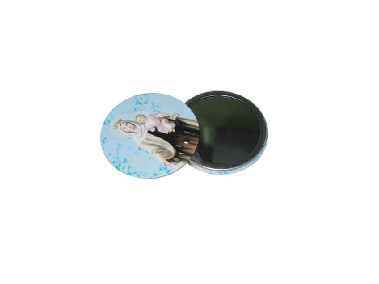 • Round shape tin pocket mirror.