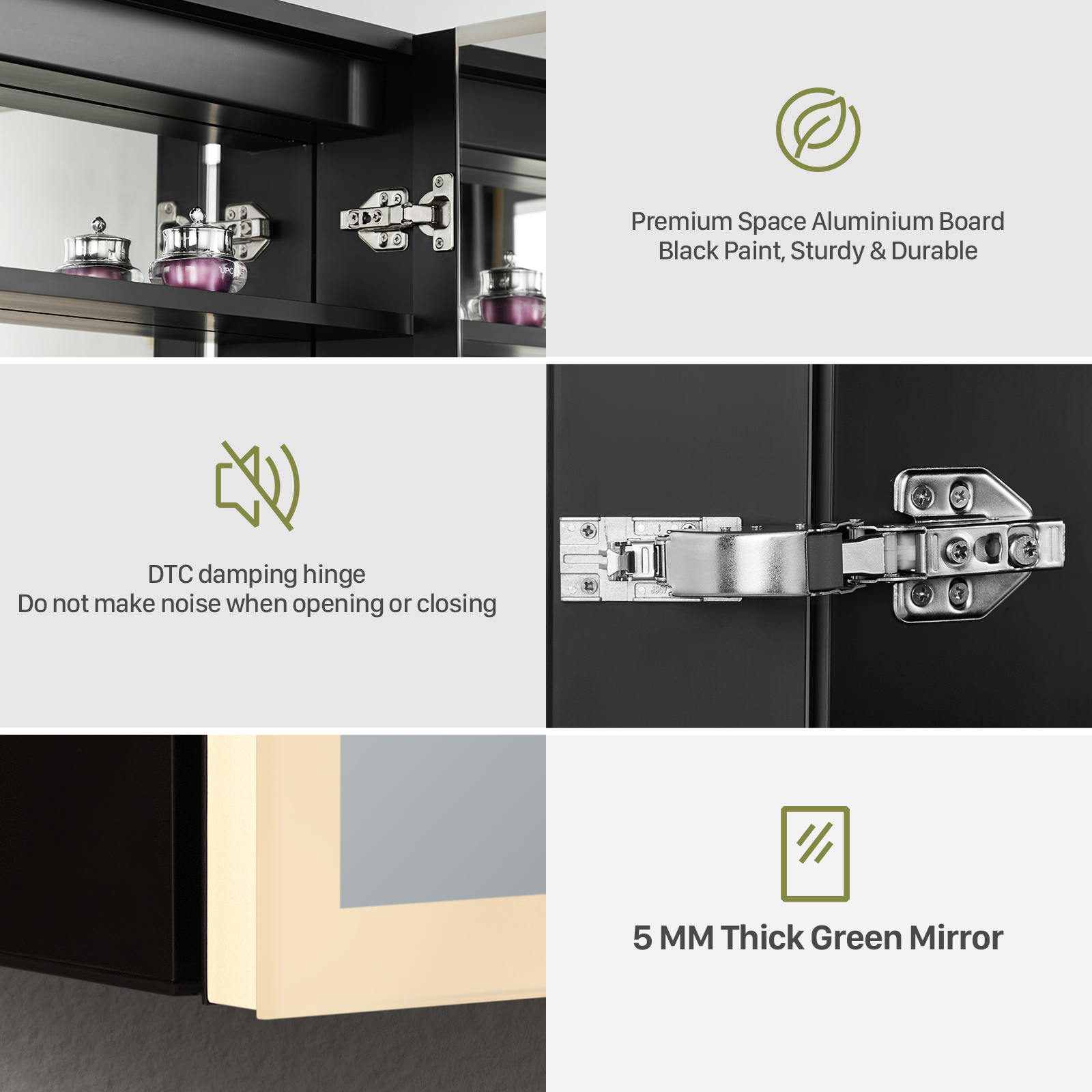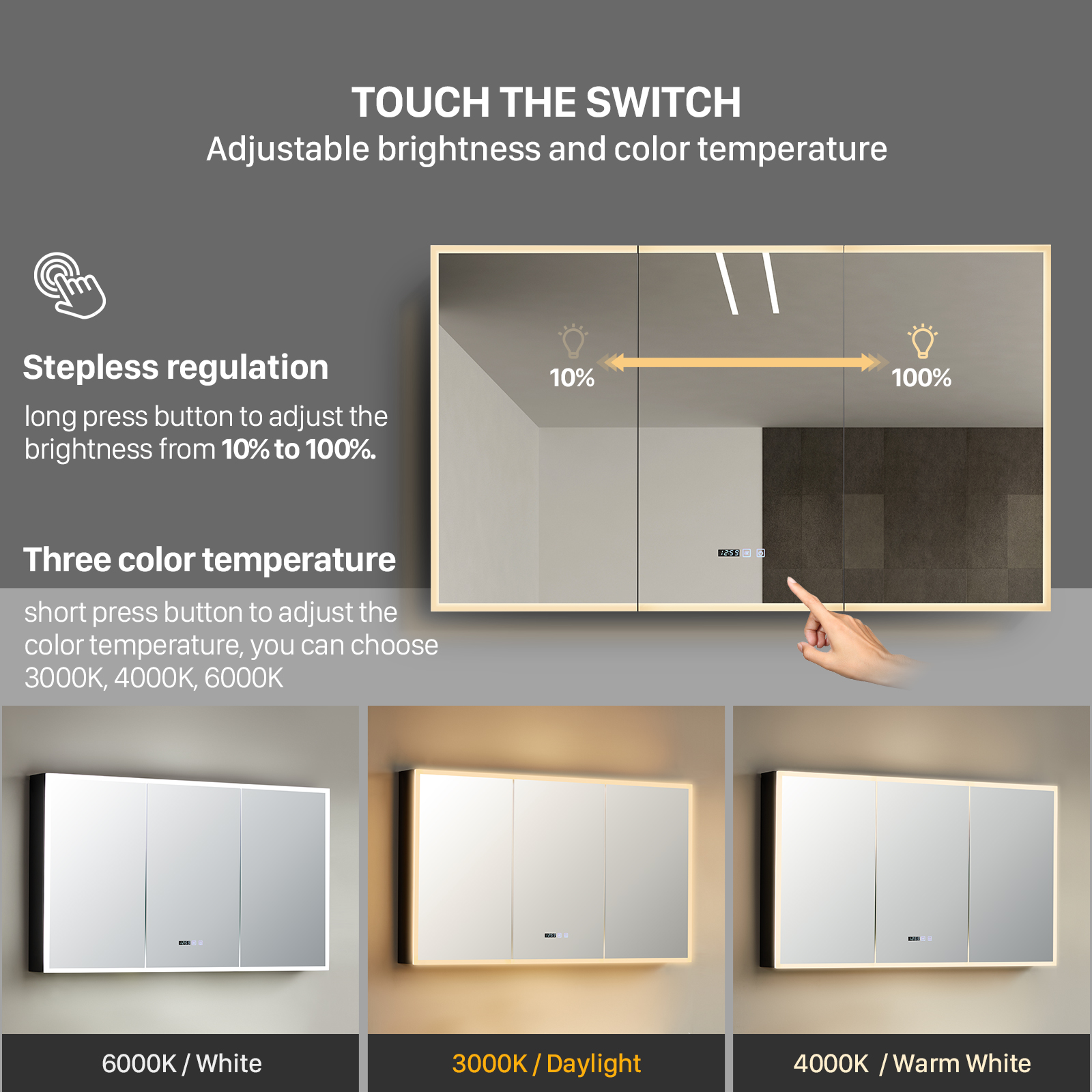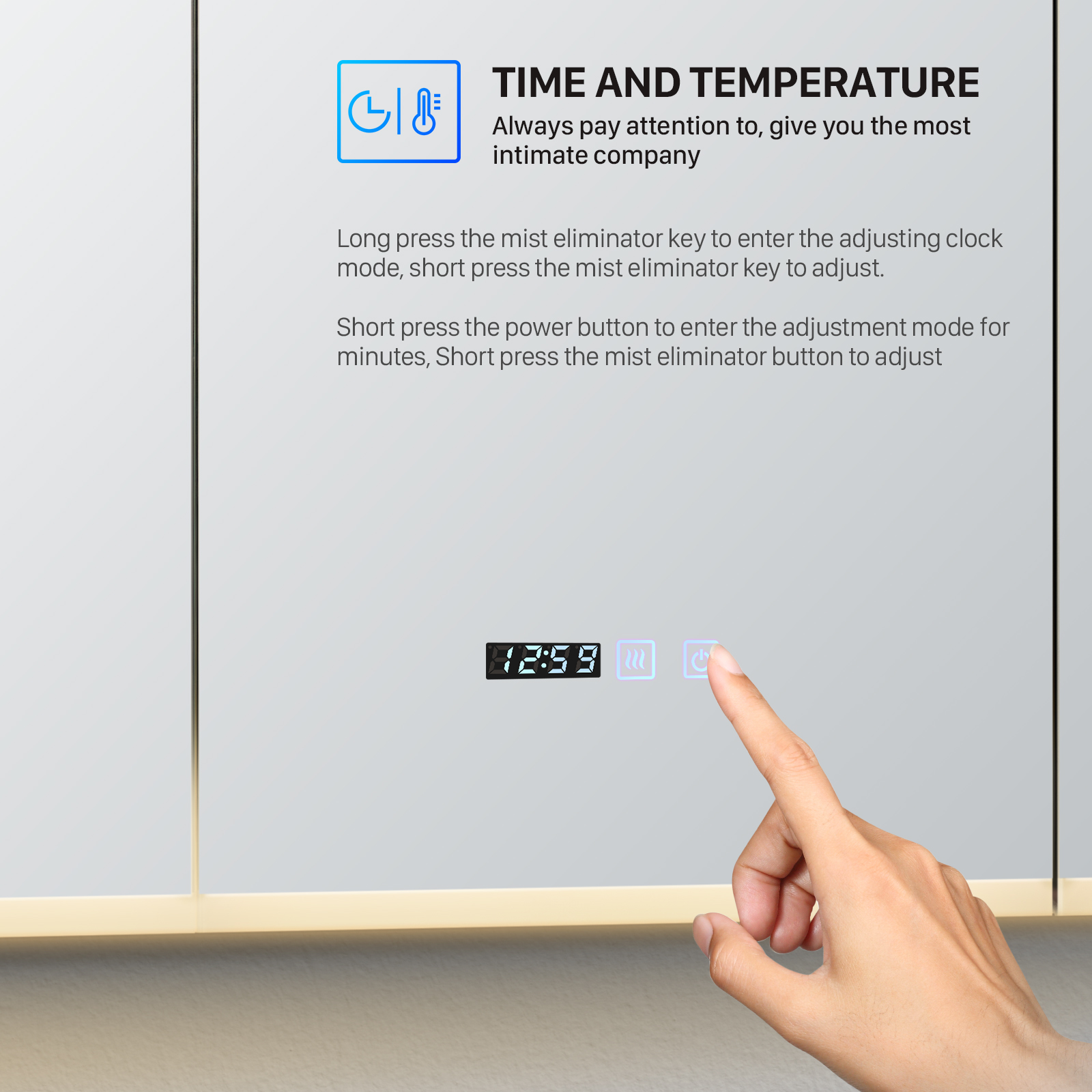 Anti-fog, Time and Temperature display, Color temperature adjust, Brightness control