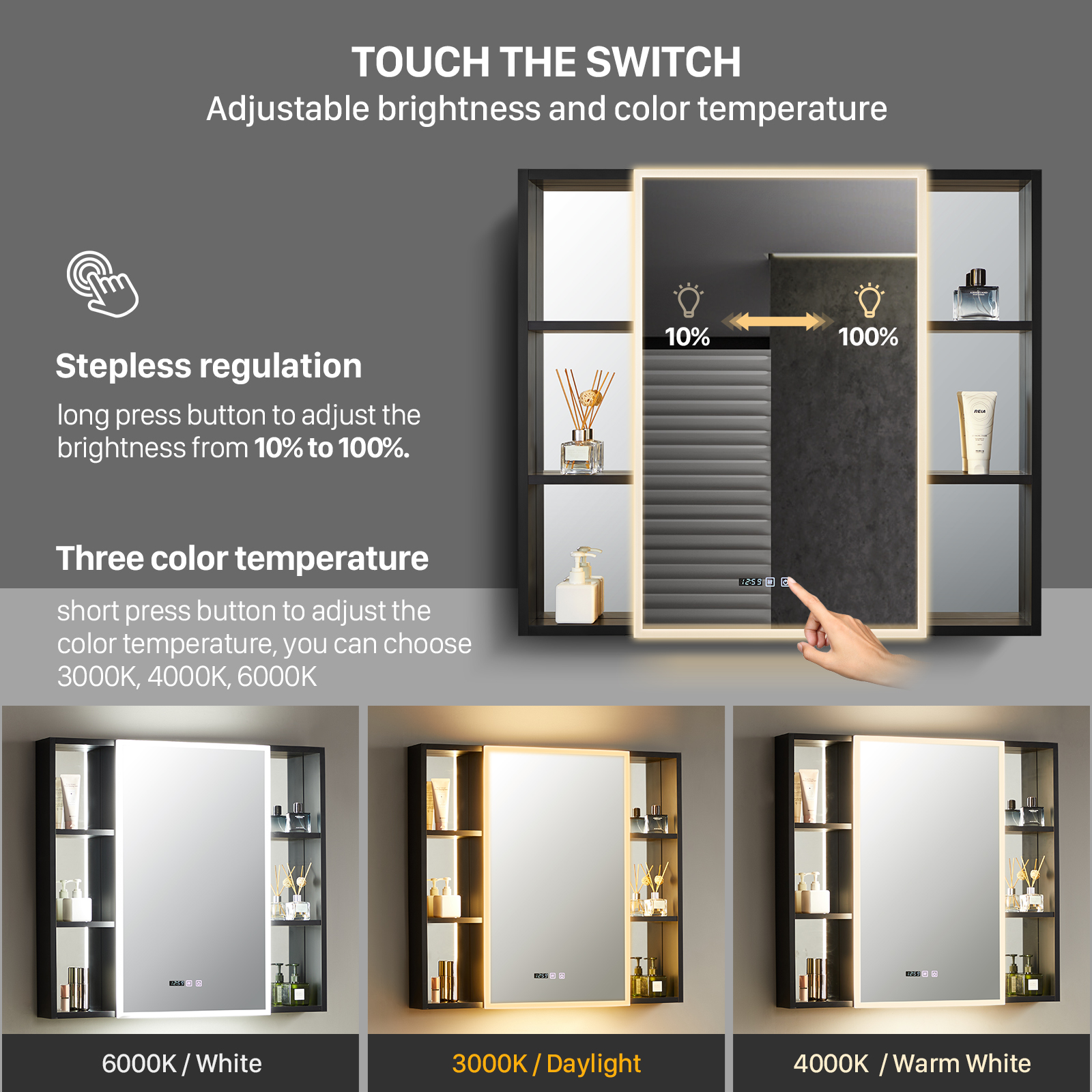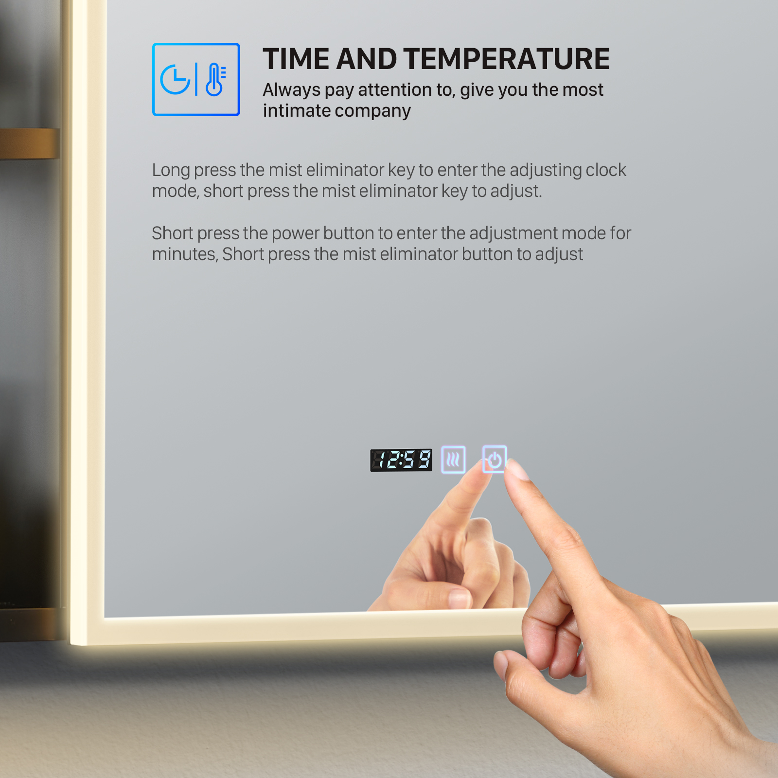 Anti-fog, Time and Temperature display, Color temperature adjust, Brightness control