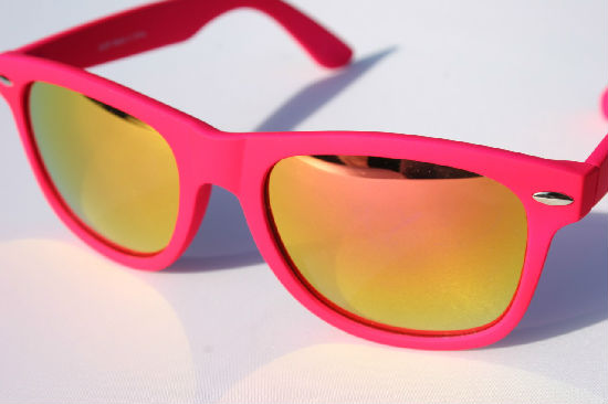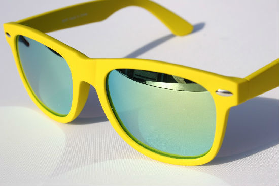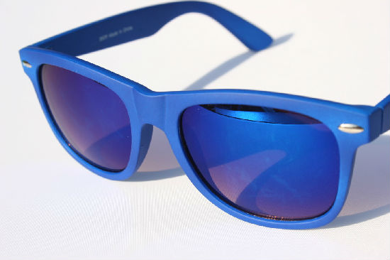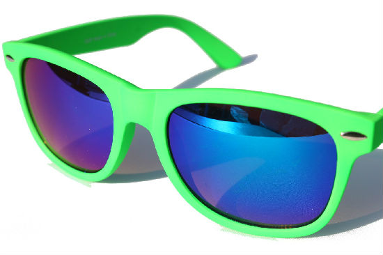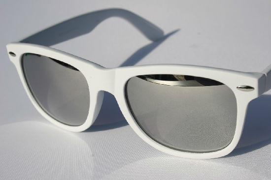 • Wayfarer sunglasses with mirror lenses.
