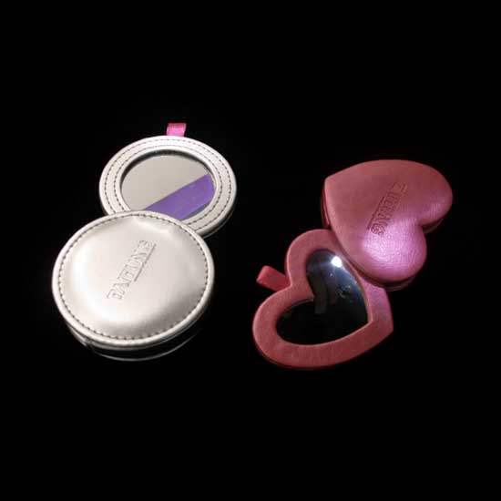 The PU-made mirror pack contains a mirror inside for added user-friendliness. It comes in a classic round or a romantic sweetheart shape. This pack is simply handy and can be brought along to everywhere easily.