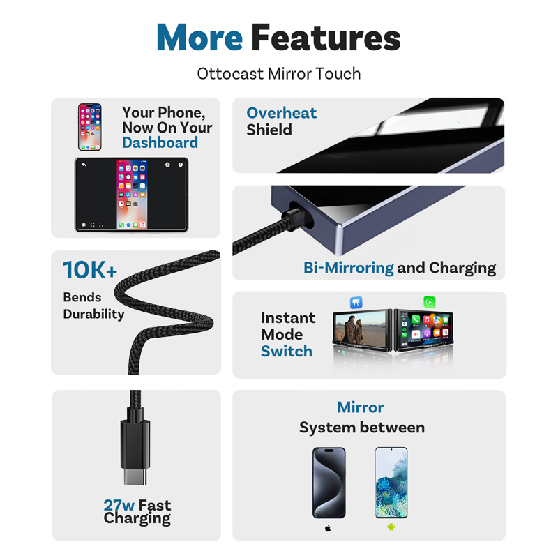 Product function: Wireless CarPlay、Mirroring Screen Projection、Reverse Control