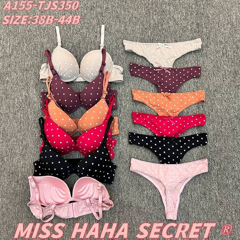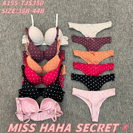 Add a playful, feminine touch to your lingerie drawer with the Miss Hana Secret A155-TJS350 Polka Dot Set! Designed for sizes 38B-44B, this matching bra-and-panty set features cute polka dot patterns in soft, vibrant hues (pink, black, red, orange, burgundy, beige). The bra includes ruffled details and adjustable straps for comfort, while the coordinating panty completes the charming look—perfect for daily wear or a fun, stylish treat.