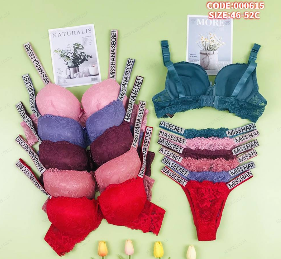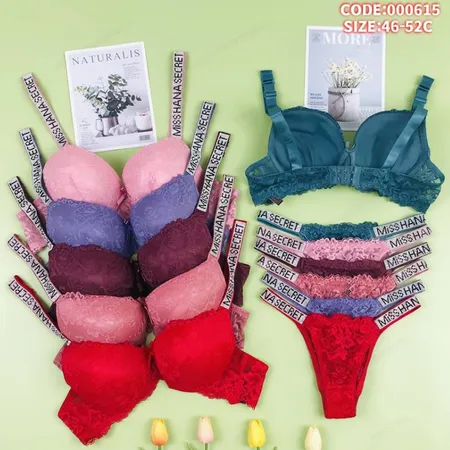 Discover the Miss Hana Secret Lace Lingerie Set, a stunning blend of elegance and comfort. Adorned with delicate lace detailing and signature logo straps, this set includes a supportive bra and matching lace panties. Available in a range of romantic colors such as pink, purple, burgundy, and red, and sized from 46-52C, it offers a tailored fit for diverse body types. Crafted with premium lace, it ensures both a chic appearance and a soft, comfortable feel. Whether for special moments or everyday luxury, this lingerie set elevates your intimate wear collection with its timeless design and feminine charm.