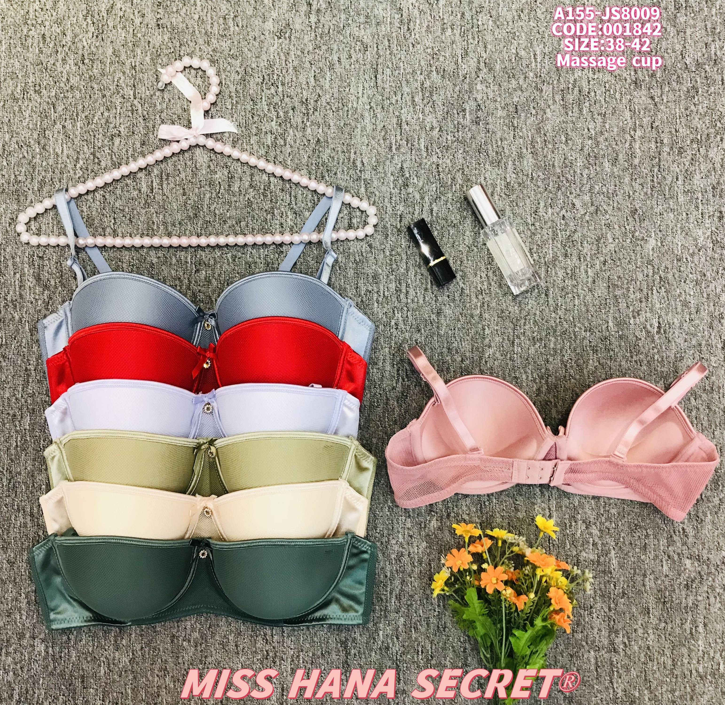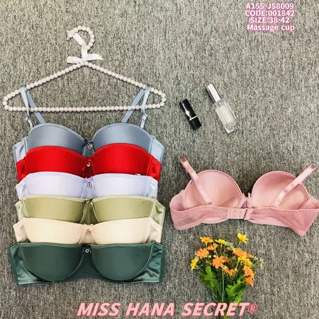 Elevate your lingerie collection with Miss Hana Secret’s massage cup bras! Crafted from a sleek satin-mesh blend, these push-up styles offer gentle support and a luxurious feel. Available in rich shades (gray, red, lavender, olive, beige, dark green, pink), they feature delicate details like decorative center buttons and adjustable straps for a personalized fit. Sized 38-42, this set blends elegance with comfort—perfect for daily wear or special occasions!
