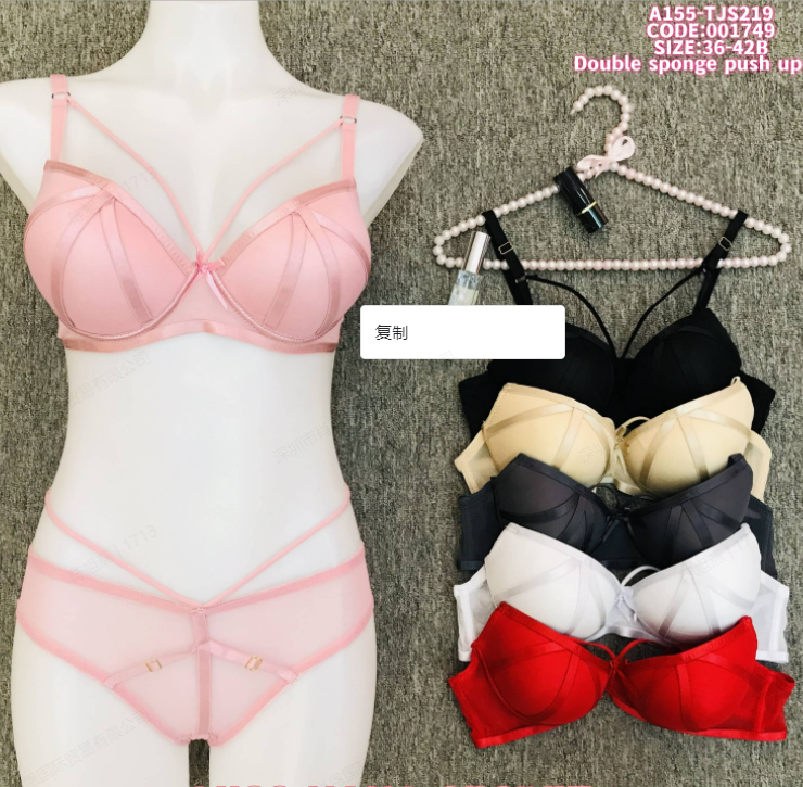 Introducing the Miss Hana Secret Satin Lingerie Set, a sophisticated blend of elegance and support. Featuring a strappy design with smooth satin fabric, this set includes a bra with double sponge push-up technology for enhanced lift and shape, paired with matching strappy panties. Available in a range of elegant colors such as pink, black, beige, gray, white, and red, and sized 36-42B (Code: 001749), it offers a tailored fit and a stylish silhouette. Crafted for both comfort and fashion-forward appeal, this lingerie set is perfect for those seeking to add a touch of luxury and allure to their intimate wear collection.