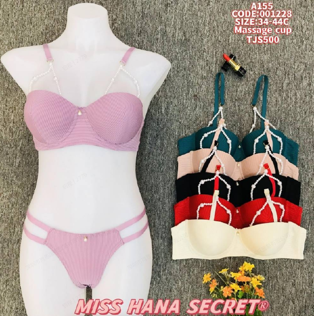 The Miss Hana Secret Thin Cup Bra Set (A155-TJS400) is a perfect combination of comfort and fashion-forward design. It features a thin cup construction for a natural look and enhanced breathability. The set stands out with its unique strap design, adding a trendy touch to the lingerie. Available in colors like red, black, gray, beige, navy, and peach, it caters to diverse style preferences. With a size range of 38-43C, it offers a supportive and comfortable fit for various body types. Made from high-quality materials, this lingerie set from Miss Hana Secret is ideal for daily wear, combining functionality with a chic aesthetic that elevates your undergarment collection.