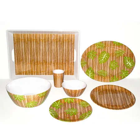 Mix & Match Bamboo & Leaf Design Melamine Tableware Dinner Set