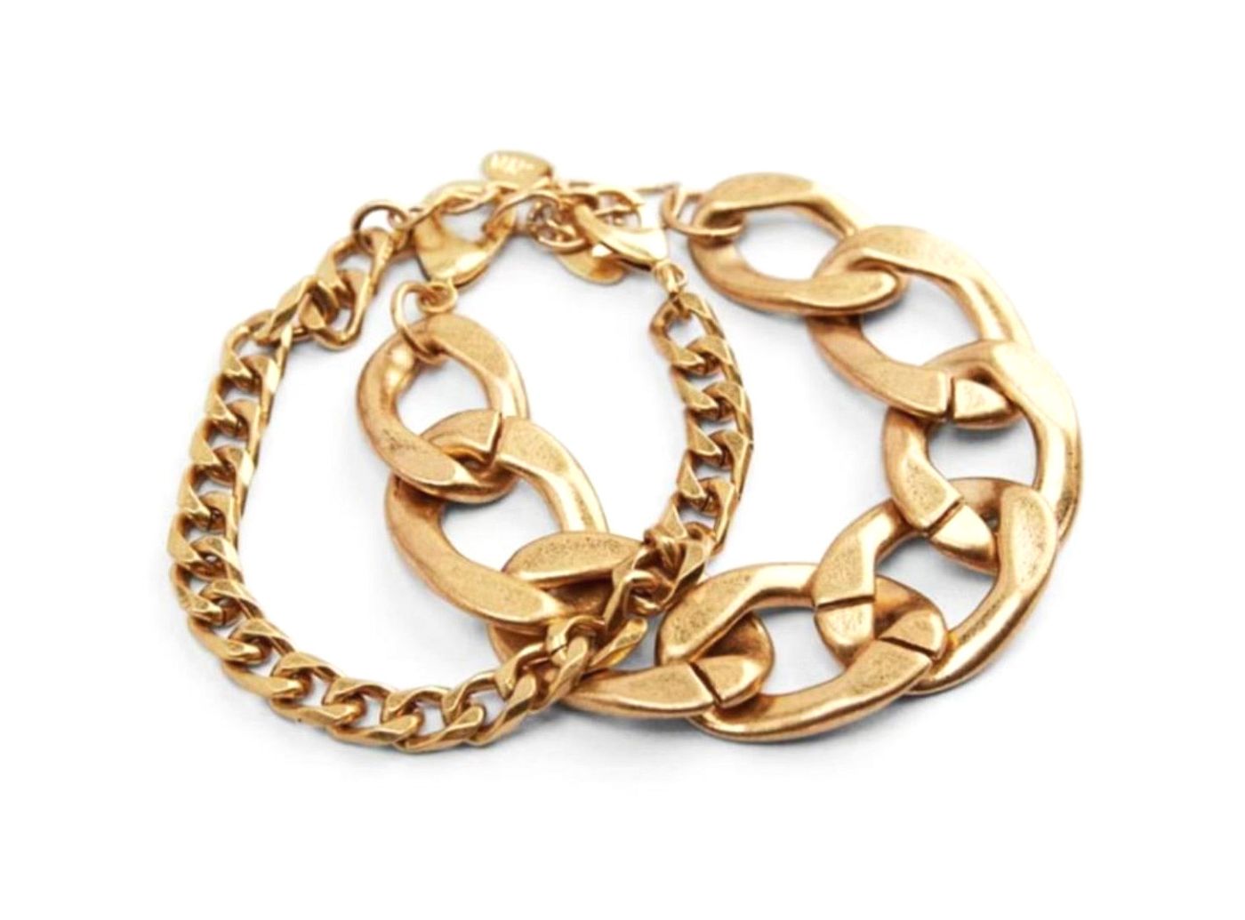 As shown is a high-fashion mixed style golden plated bracelet with charm alloy materials.