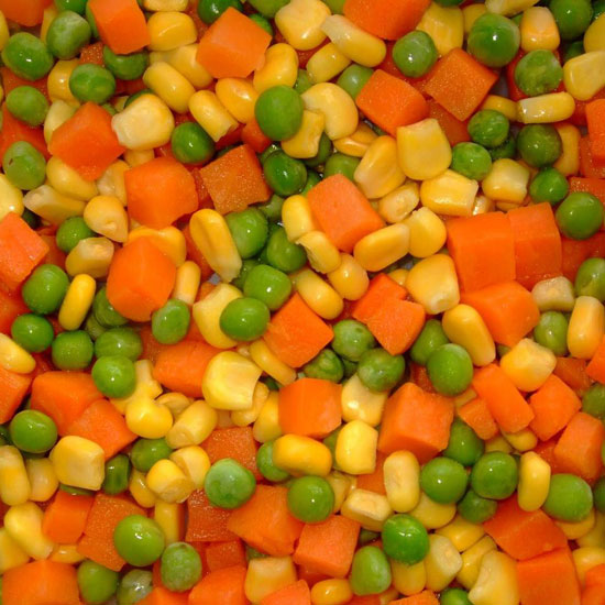 The mixed vegetables include carrot dices, sweet corn kernels and green peas. These ingredients boost your appetite with a colorful and delightful combination. They make delectable and wholesome additions to many recipes.