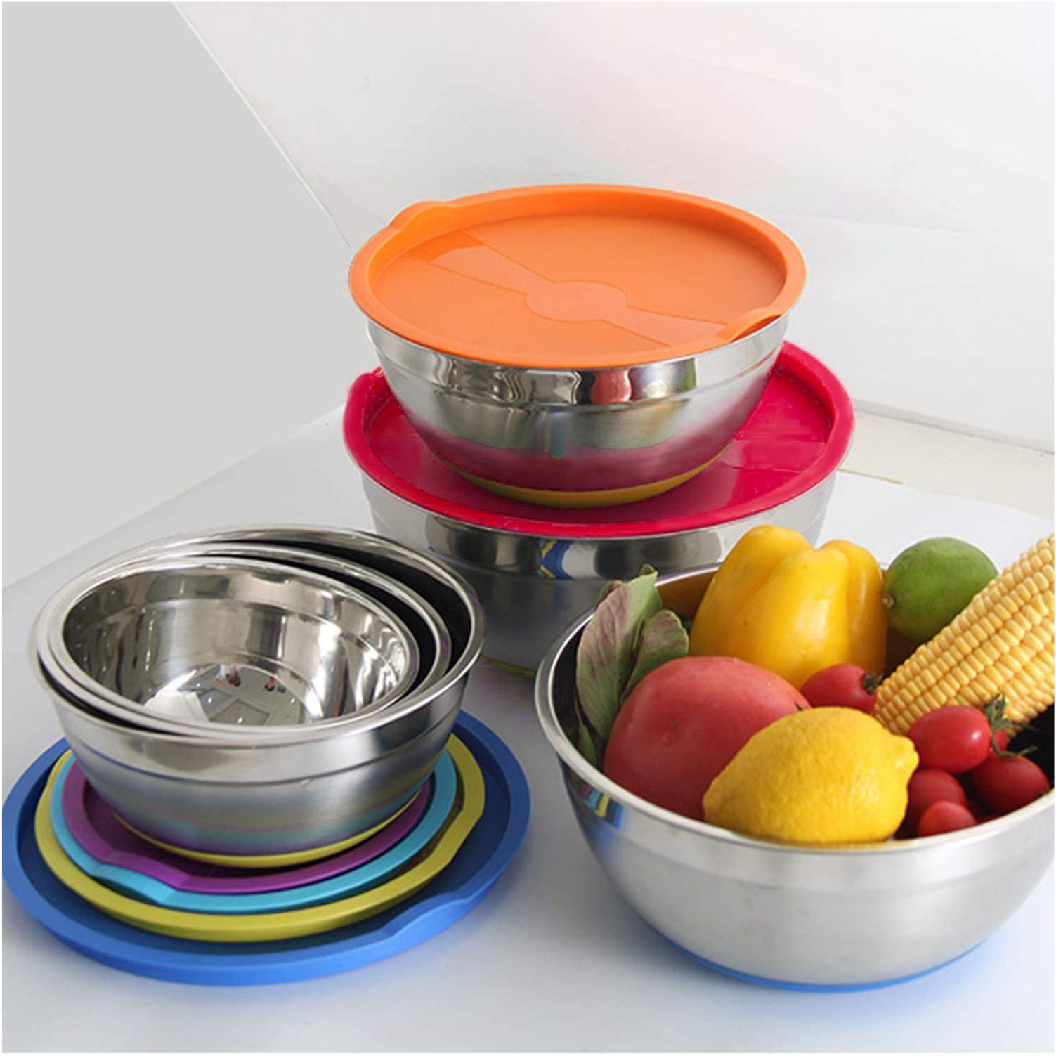 [TIGHT-COLORFUL LIDS]: Flexible BPA free plastic lids closely fit the bowls, keep your food fresh, tight fitting lids are great for food storage, great choice for storing food for longer.