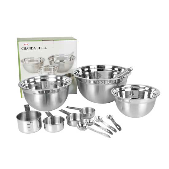 The well-designed mixing and measuring set helps you prepare your favorite dishes more efficiently. The set includes a whisk, bowls, measuring spoons and measuring cups. The high-quality stainless steel set can be used for a long time.