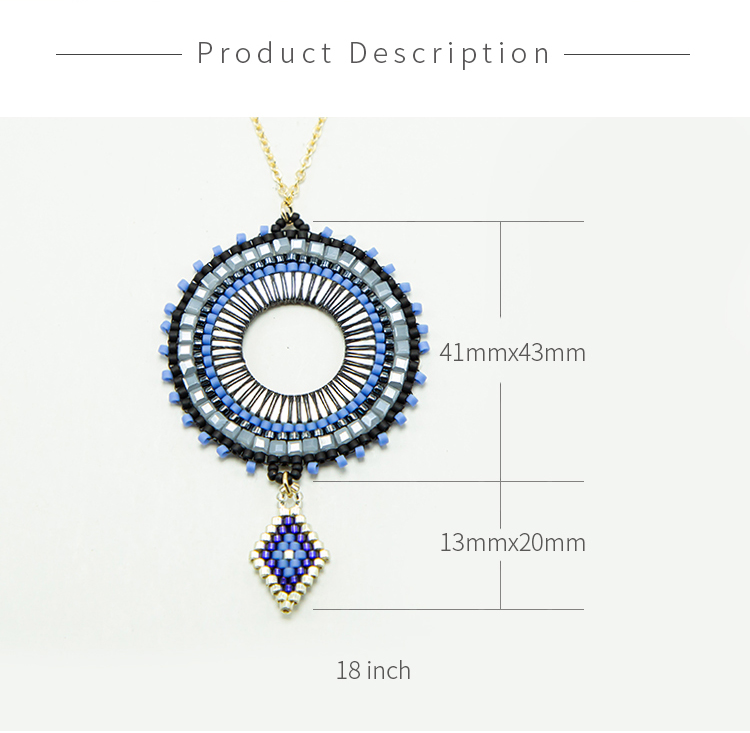 • Miyuki Seed Beads Necklace, 18inch length, ring size: 41x43mm, block size: 13x20mm