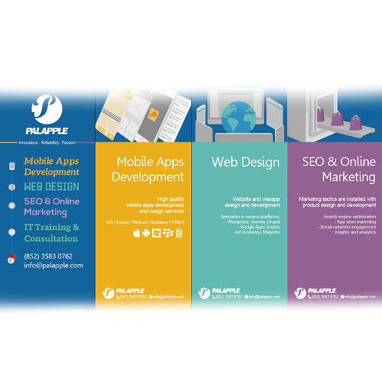Palapple (Hong Kong) Ltd provides comprehensive IT solutions for companies and organizations. We can offer high-quality mobile app development and design services. We support the operating systems of iOS, Android, Windows, Blackberry and HTML5.