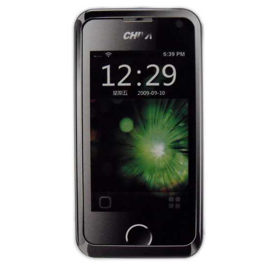 Displayed here is a mobile phone with multiple functions. With a 3.2" WQVGA TFT touch panel, the phone can be operated by touching the icons on the screen. The large screen makes it comfortable to read.