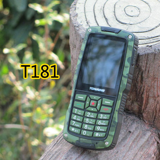 This is a bar phone featuring a rugged housing with camouflage patterns. The IP67-level dustproof and waterproof structure allows it to be used in any environment. The phone comes with an anti-slip rim for a steady grip.