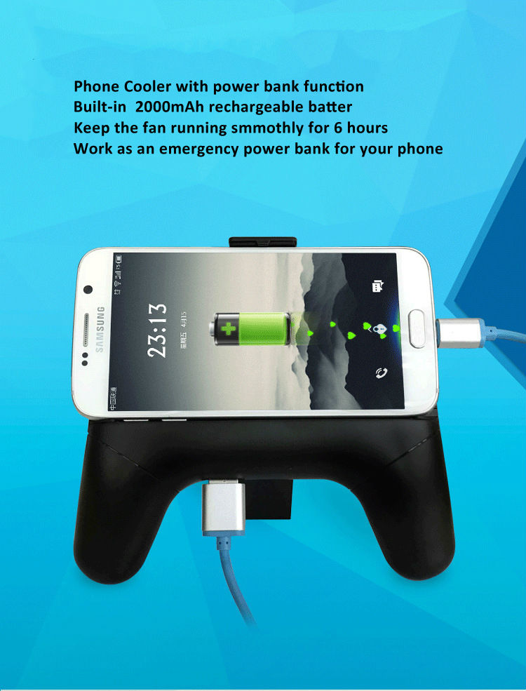 • It works as mobile phone holder, game handle, mobile ventilation and power bank, mobile charger