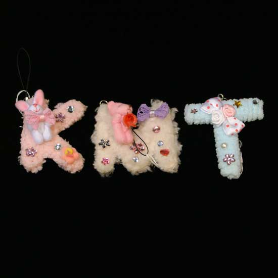 The cotton mobile phone strap goes with a fluffy texture. It is embellished with ribbons, fabric animal figures, tiny glittering flowers and beads. The strap also boasts frayed edges. Coming with a letter of the English alphabet, each beautiful strap is best to be personalized by hanging your own one to your cell phone.