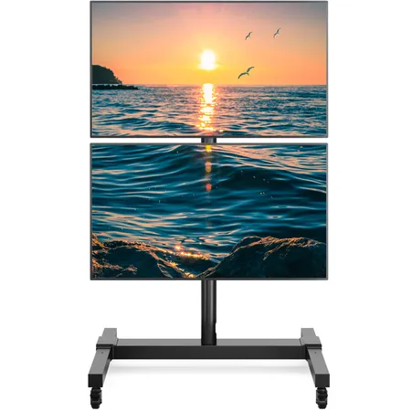UNIVERSAL TV STAND WITH WHEELS: Rolling TV Cart with dual screen design is compatible for most 32 37 39 40 43 49 50 55 65 inch TVs and holds up to 132 lbs. Fits VESA mounting hole patterns 100x100mm- 600x400mm.