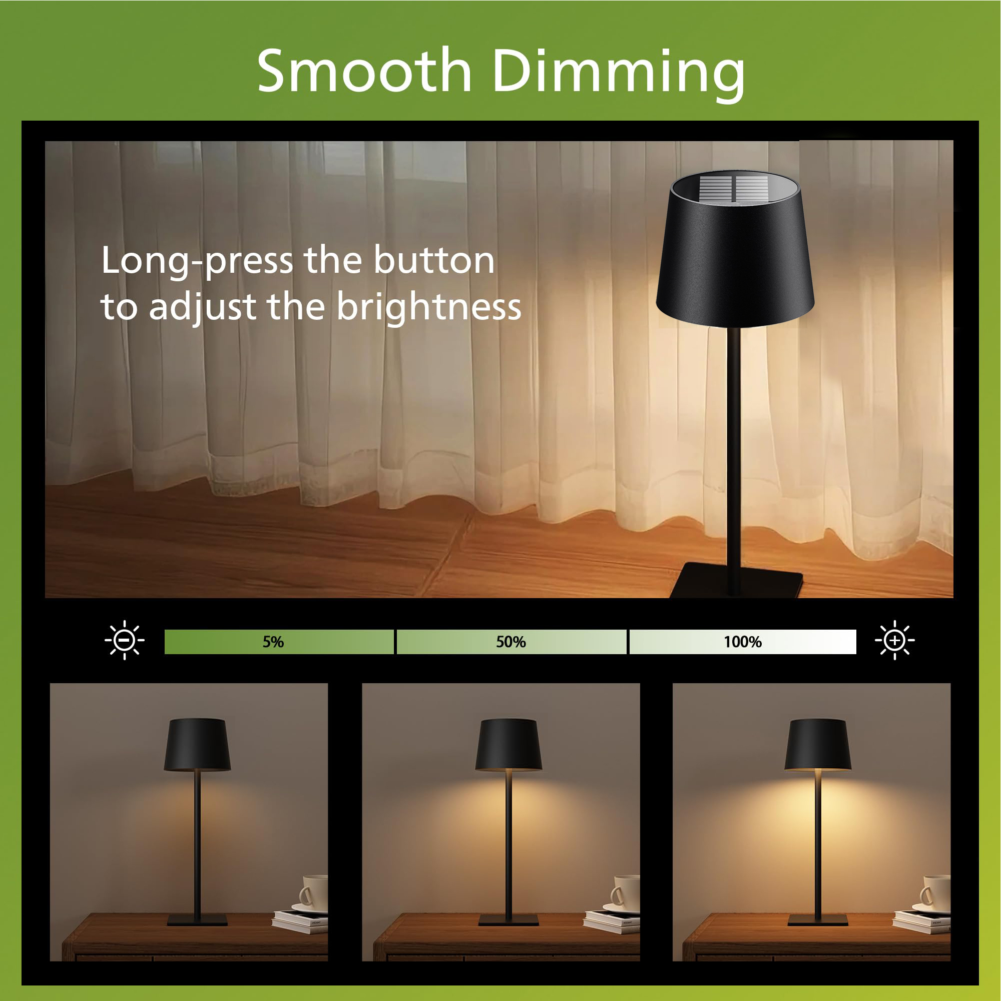 5. Smooth Dimming - long-press the button to adjust the brightness