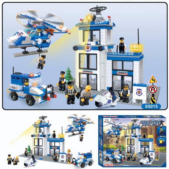 This model toy set has a funny theme of secret police, including a police station, a police car and a police helicopter. The detailed blocks allow great flexibility in building. Let's start your adventure with the model policemen.