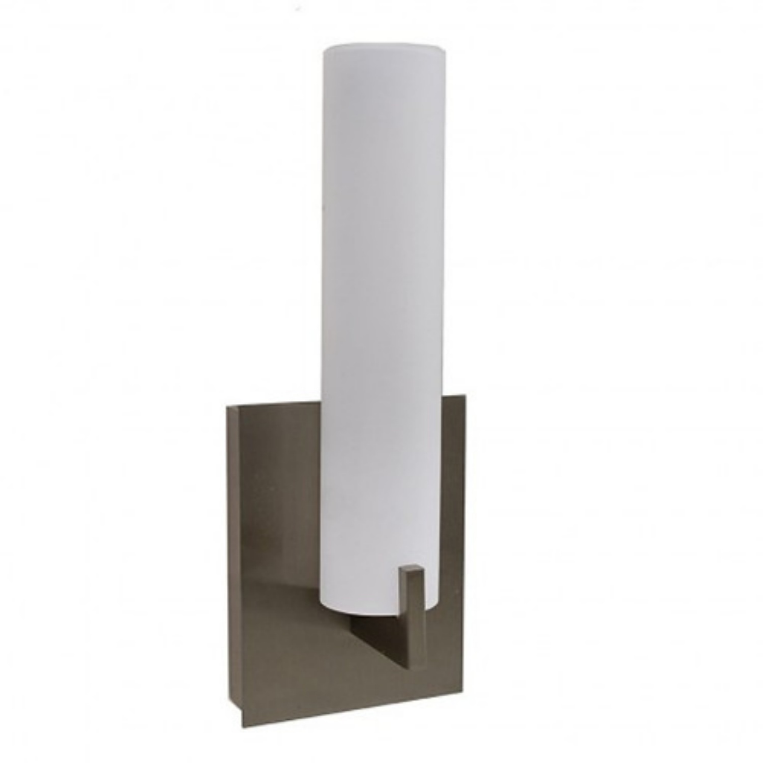A transitional style, this beautiful brushed nickel sconce light will bring a new look to any part of your home. This stunning glass cylinder wall sconce gives off a glow that will illuminate an area of your desire. A vertically-oriented, round white frosted glass shade stands over a rectangular metal plate, this modern sconce light fixture offers a comforting design to your bath, vanity area or hallway. It's UL certified for use in dry and damp environments, even is ADA compliant to ensure a perfect fit for any indoor space.