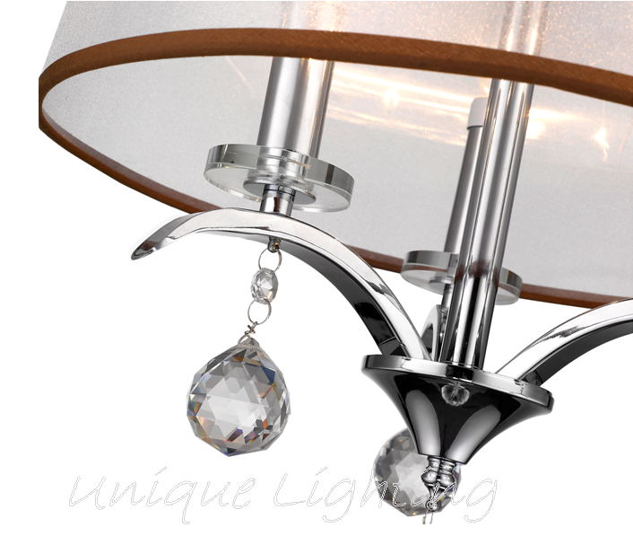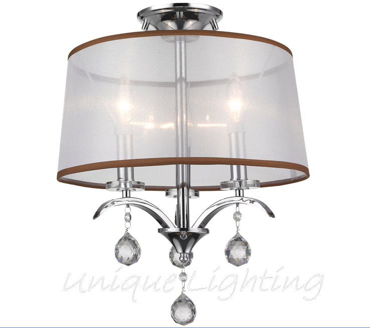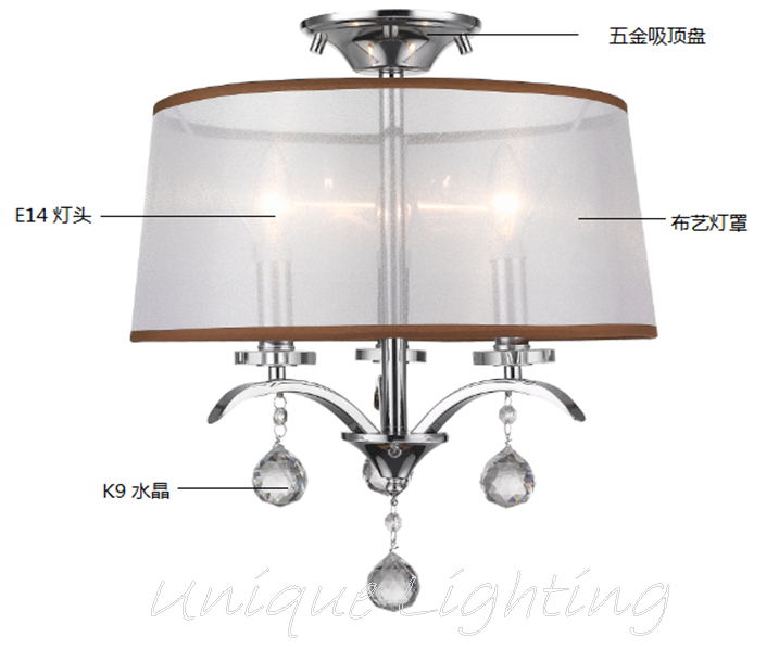 Modern Concise Style Drum Shape Of Fabric Semi Flush Mounted Crystal Pendant Lamp