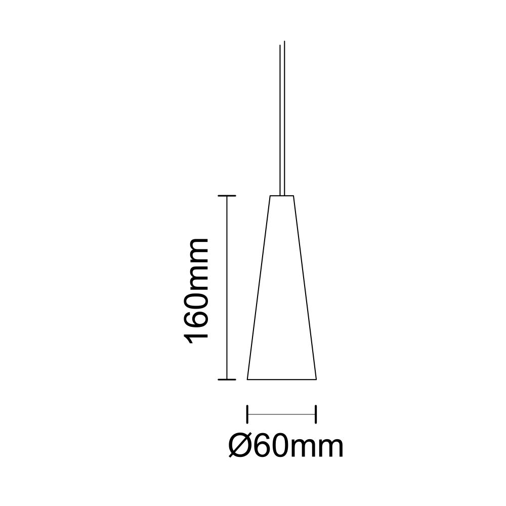 60*60*160 mm, with 2 meters suspension cable