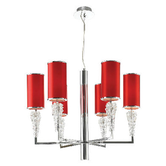 Modern and elegant, this stunning luminary brings a contemporary twist to the classic chandelier. Featuring a six-light structure, it creates an optimum balance of light, perfect for illuminating dining areas, entryways, or living rooms. With its silver metal frame, it radiates a high-end polished look, effortlessly integrating into modern, contemporary, and even minimalist decors. This lamp is available in either white or red shades, providing potential buyers with options to best compliment their interior design. The shades add a vibrant touch to the lamp's aesthetic profile while diffusing the light to set a warm and inviting ambiance. Catering to practical aspects, the pendant lamp uses E14 bulbs, popular for their energy efficiency, longer life span, and higher brightness.