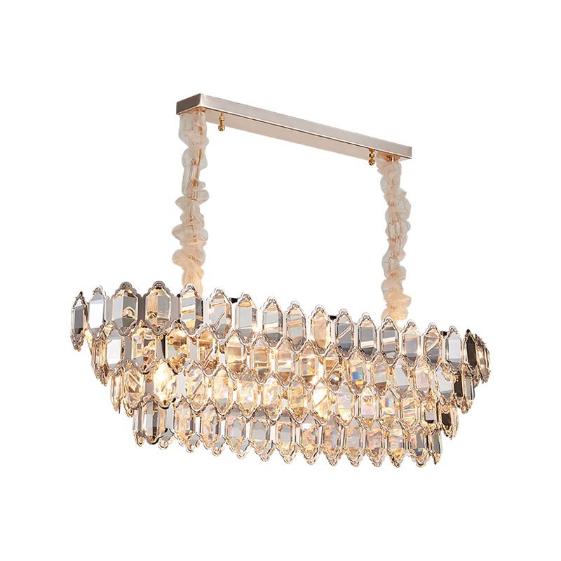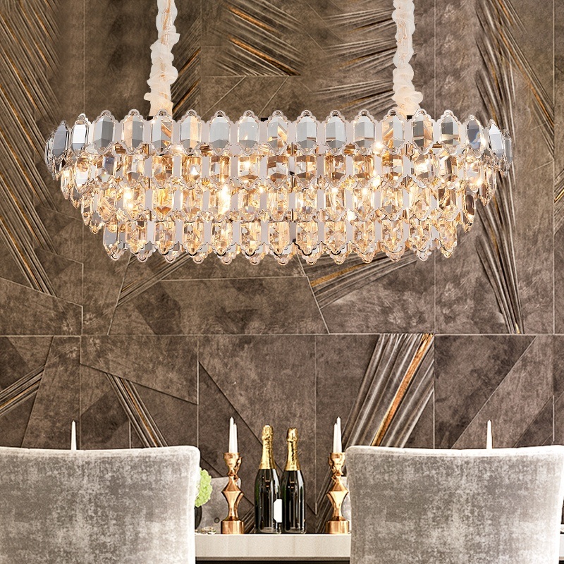 Modern Rain Drop Rectangle Clear K9 Crystal Chandelier Pendant Lamp Fixture for Dining Living Bedroom Room