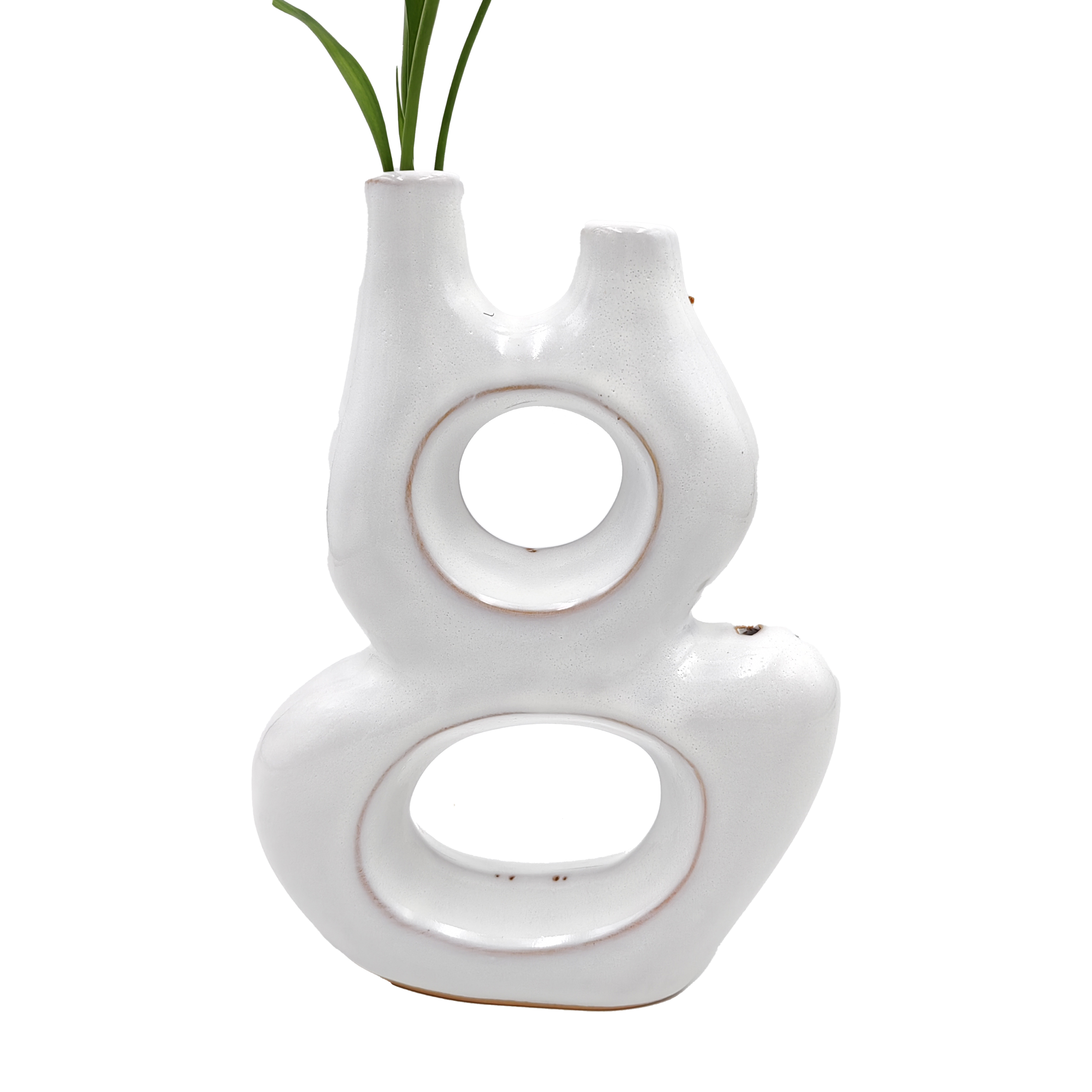 Modern Sculptural Double-Opening Hollow Ceramic Vase for Home Decor