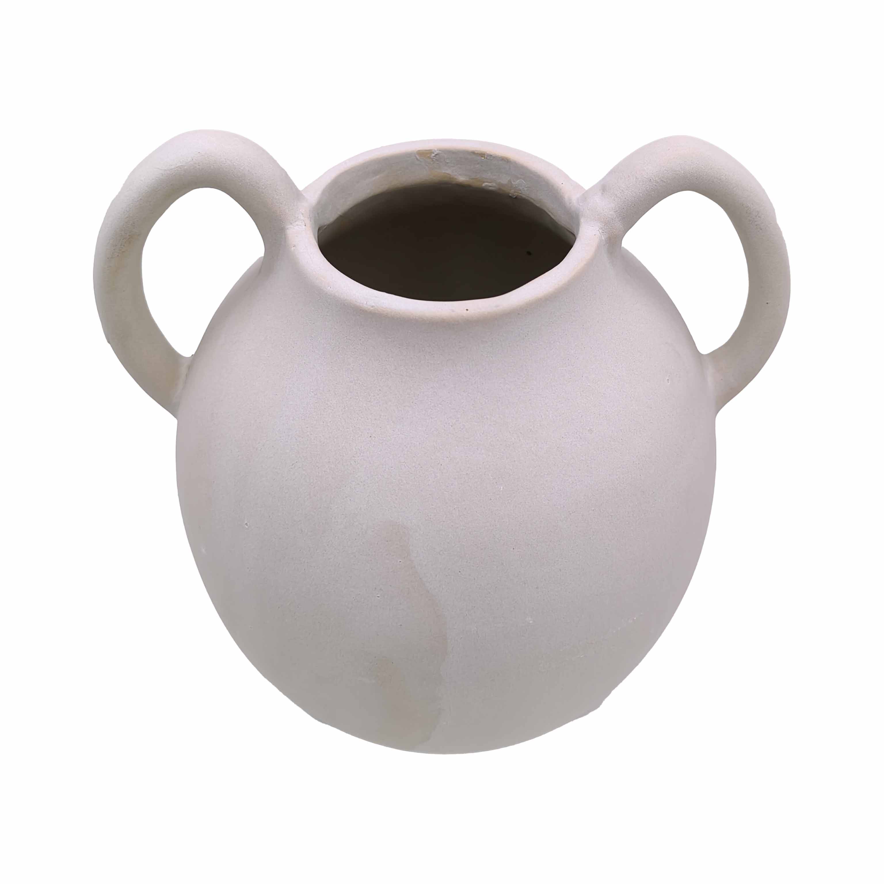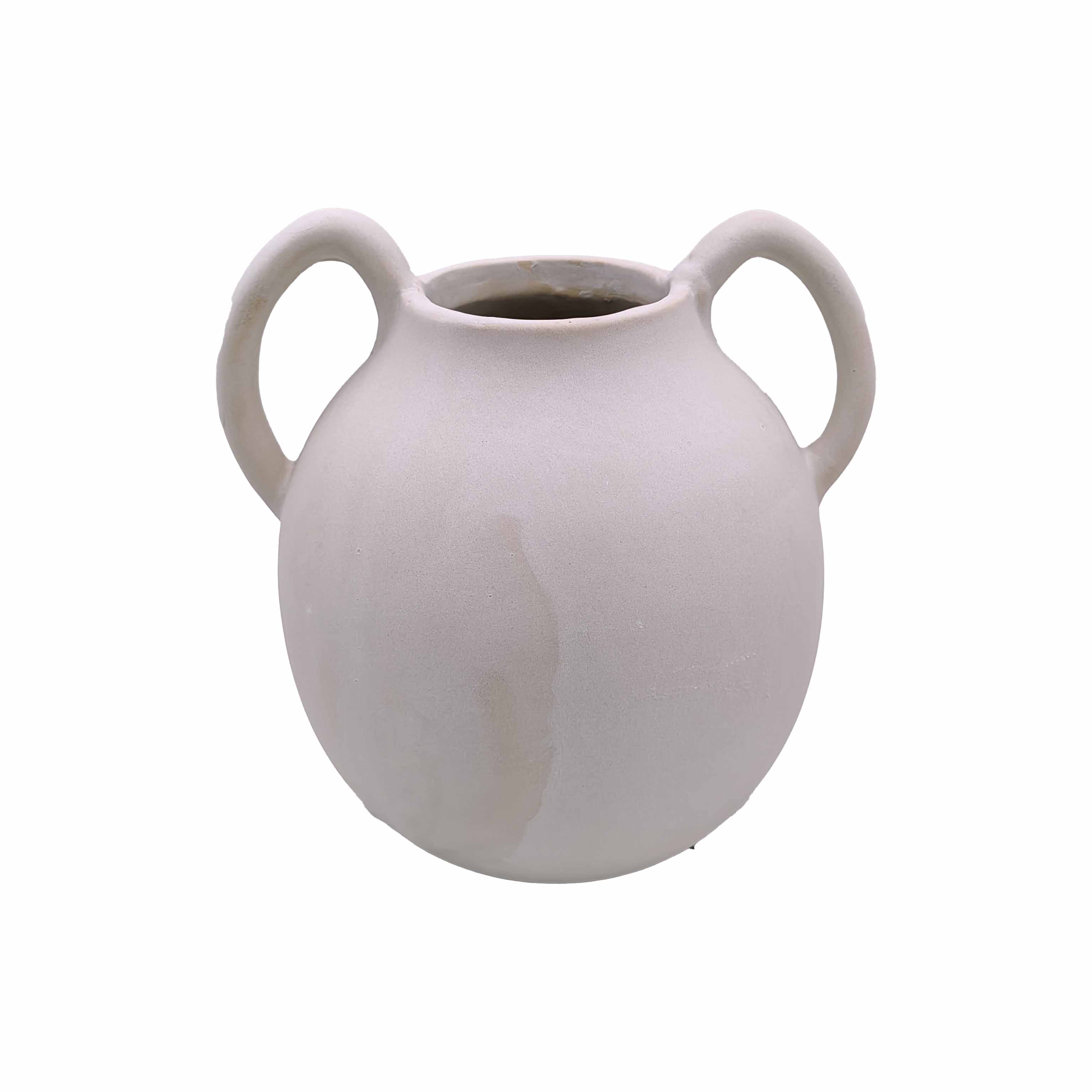 Modern White Ceramic Double-Handle Round Vase for Home Decoration