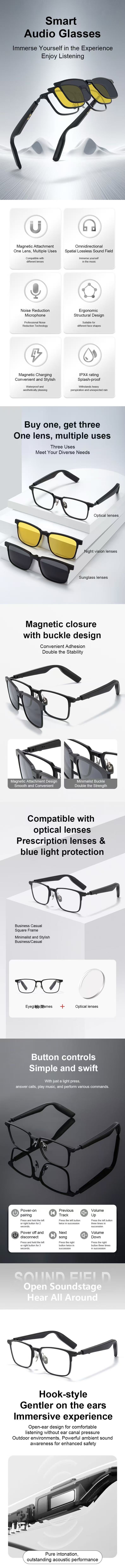 Modular Smart Glasses with Magnetic Lens System 3-in-1 (Optical/Sunglass/Night Vision) Innovative OEM/ODM