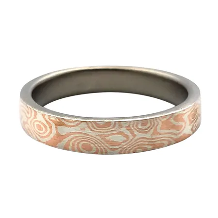 Made of full 20 to 30 layers of Mokume Gane, this ring is inlaid with a deep silver and copper alloy that is twisted together to obtain this design. The ring comes with a desirable comfort fit for extra satisfaction and is ideal for engagement or wedding rings.